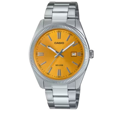 Marke: Casio Glasart: Mineralglas Ziffernblattfarbe: Hell Schliesse: Faltschließe Bandart: Gliederband Wasserdichte: 50 Meter Werkart: Quartz Ziffernblattart: Strich Ziffernblattzeichen: Index Artikelnr: 149015 -