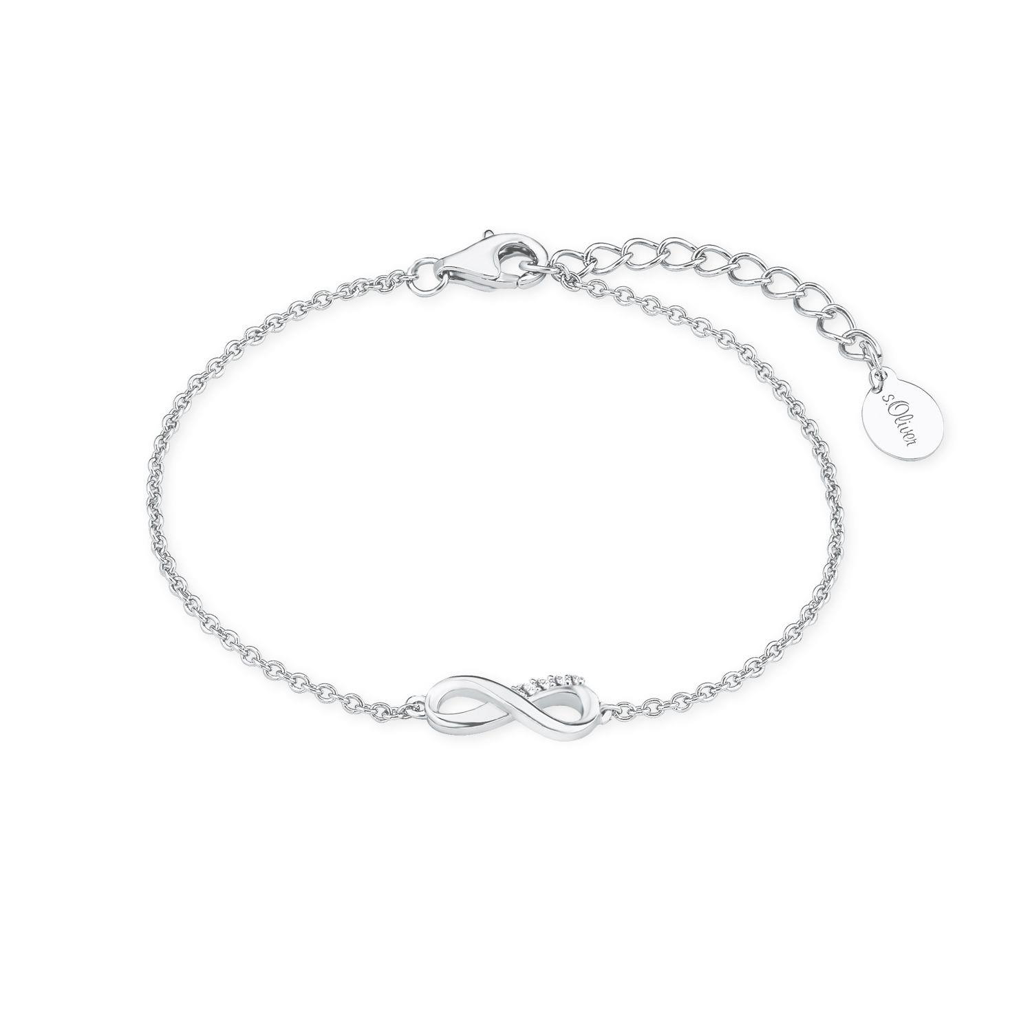 Das Symbol der Unendlichkeit ist schon lange nicht mehr wegzudenken. Eine besonders schöne Ausführung der Unendlichkeit spiegelt sich hier bei diesem schlicht gehaltenen Armband der s.Oliver SO PURE Kollektion wieder. Das Symbol ist mit fein geschliffenen Zirkonia in reinem Weiß besetzt und bringt dieses Armband besonders schön zum Funkeln. Gefertigt ist dieses Schmuckstück aus 925er Sterling Silber und ist zudem mit einer hochwertigen Rhodiumbeschichtung veredelt. Dank eines Verlängerungskettchens ist das Armband zudem in der Länge individuell verstellbar (16+3 cm) und einfach mit einem praktischen Karabiner zu verschließen.