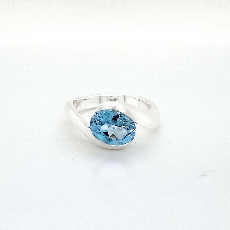 Material: Silber925 , Silber Ringgrösse: 56 Artikelnr: 140450 Steine: Blautopas beh. (1) Oval facettiert , blau
