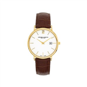 Material: Edelstahl, gelb Marke: Abeler Söhne Glasart: Saphirglas Ziffernblattfarbe: Hell Schliesse: Dornschließe Produktfamilie: Quarz Bandart: Leder Wasserdichte: 30 Meter Werkart: Quartz Ziffernblattart: Strich Ziffernblattzeichen: Index Artikelnr: 148776