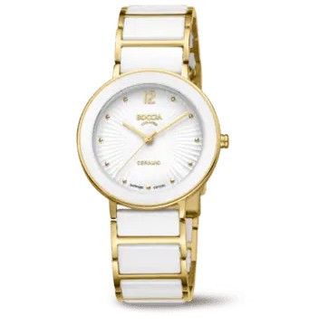 Material: Keramik, weiß Marke: Boccia Glasart: Saphirglas Ziffernblattfarbe: Weiss Schliesse: Faltschließe Bandart: Gliederband Wasserdichte: 50 Meter Werkart: Quartz Ziffernblattart: Punkte Ziffernblattzeichen: Index Artikelnr: 147350