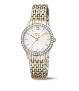 Boccia Damen Uhr Titan Metallband Bicolor Steinchen BocciaDamenuhren