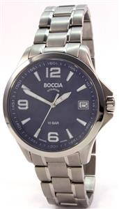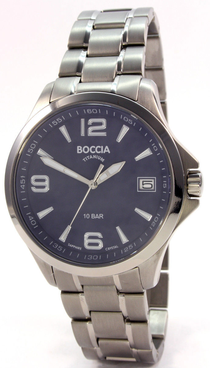Marke: Boccia Glasart: Saphirglas Ziffernblattfarbe: Blau Schliesse: Faltschließe Bandart: Gliederband Wasserdichte: 100 Meter Werkart: Quartz Ziffernblattart: Strich Ziffernblattzeichen: Index Artikelnr: 125588 -