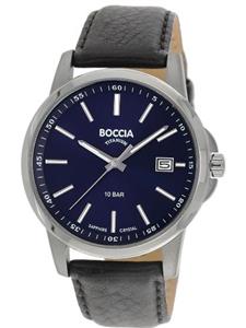 Material: Titan, grau Marke: Boccia Glasart: Saphirglas Ziffernblattfarbe: Blau Schliesse: Dornschließe Bandart: Leder Wasserdichte: 100 Meter Werkart: Quartz Ziffernblattart: Strich Ziffernblattzeichen: Index Artikelnr: 137408