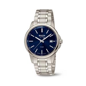 Material: Titan Marke: Boccia Glasart: Saphirglas Ziffernblattfarbe: Blau Schliesse: Faltschließe Bandart: Metall Wasserdichte: 100 Meter Werkart: Quartz Ziffernblattart: Strich Ziffernblattzeichen: Index Artikelnr: 138643 -
