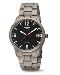 Material: Titan Marke: Boccia Glasart: Mineralglas Ziffernblattfarbe: Schwarz Schliesse: Faltschließe Bandart: Gliederband Wasserdichte: 100 Meter Werkart: Quartz Ziffernblattart: Strich Ziffernblattzeichen: Index Artikelnr: 142915