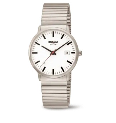 Material: Titan Marke: Boccia Glasart: Mineralglas Ziffernblattfarbe: Hell Schliesse: Zugband Bandart: Zugband Metall Wasserdichte: 50 Meter Werkart: Quartz Ziffernblattart: Strich Ziffernblattzeichen: Index Artikelnr: 149263