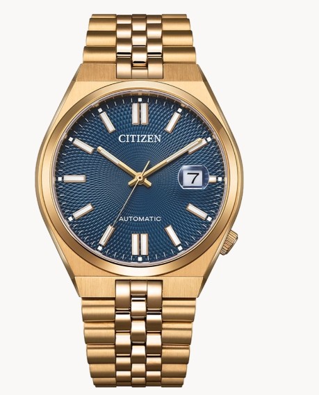 Material: Edelstahl, gelb Marke: Citizen Glasart: Saphirglas Ziffernblattfarbe: Blau Schliesse: Faltschließe Produktfamilie: Automatik Bandart: Gliederband Wasserdichte: 50 Meter Werkart: Automatik Ziffernblattart: Strich Ziffernblattzeichen: Index Artikelnr: 148851 -